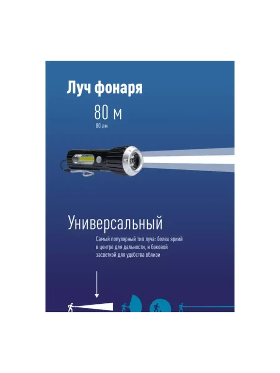 Фонарь аккумуляторный кемпинговый также отлично подойдет в качестве подарка для мужчины, увлекающегося рыбалкой или охотой. С ним он сможет наслаждаться своим хобби даже в самых отдаленных местах. Прожекторная функция позволяет осветить большую площадь, что делает его незаменимым инструментом для активного отдыха. Совмещает луч фонаря (направленный свет) и широкий свет (освещает широкое пространство с одной стороны). Коллиматорная линза(ZOOM) позволяет увеличить дальность луча. Длина луча - 80 м. Время беспрерывной работы - до 5 ч в режиме основного света, до 4 в режиме широкого света.