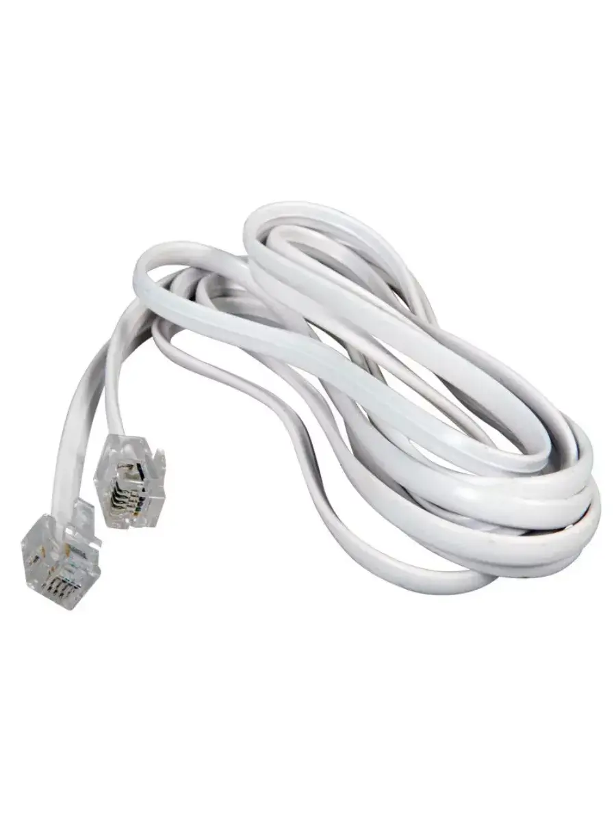 Телефонный шнур-удлинитель (джек-джек) REXANT RJ-11, 6P-4C,3 м, белый 18-3031 предназначен для подключения телефонных аппаратов, факсов, модемов, ADSL сплиттеров и других устройств с разъемами типа RJ-11 (евроджек).
